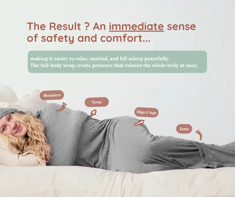 It’s a gentle, even pressure on the body, like a hug, that triggers serotonin and oxytocin, your natural “calm and comfort” hormones. 🤍